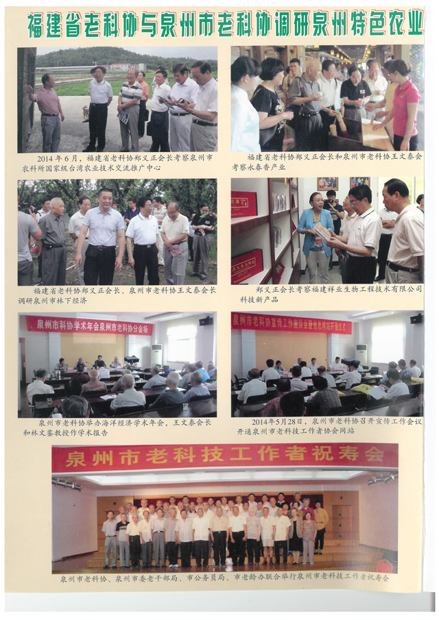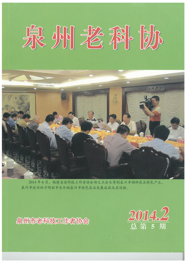 9月,《侨乡现代农业》(2014年第3期)刊发泉州市老科协调研组撰写的《泉州市农业特色优势产业调研报告》。