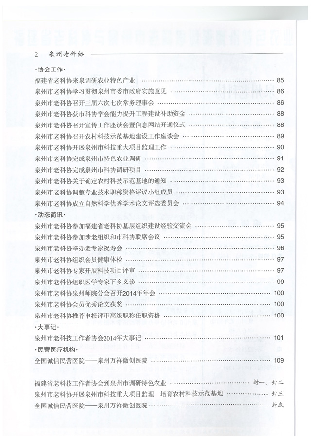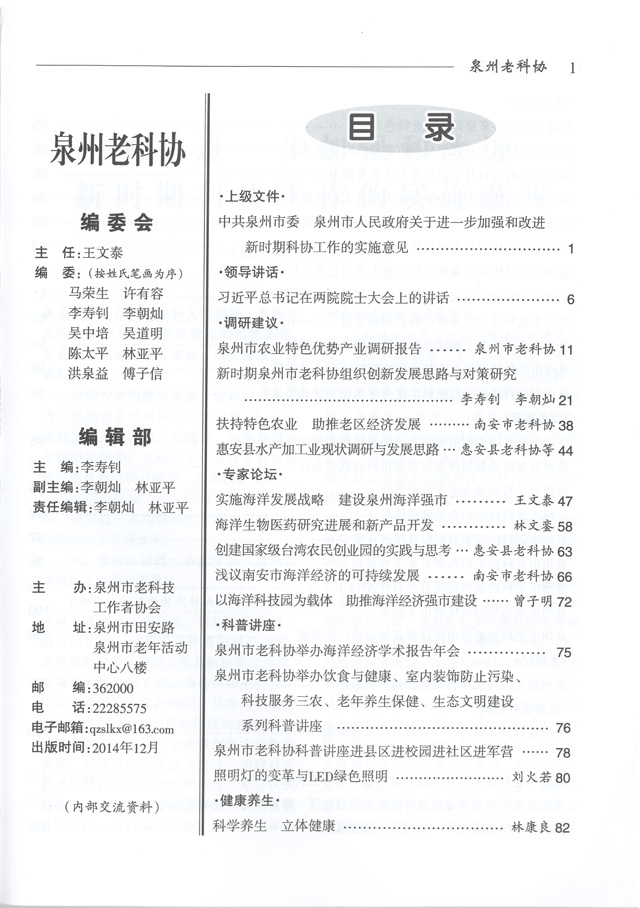 《泉州老科协》2014年第2期目录