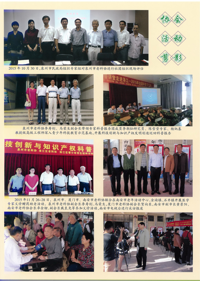 泉州市老科技工作者协会主要活动剪影……………………………………………………………封二、封三