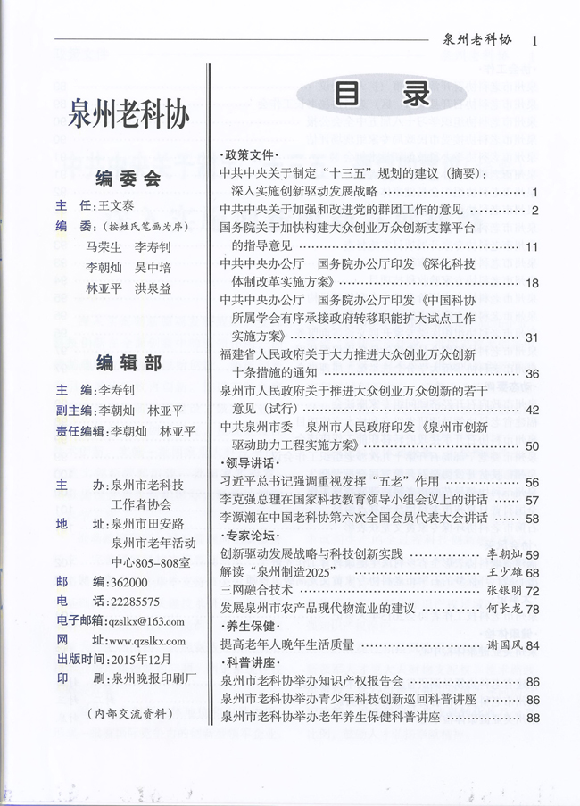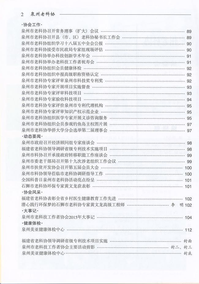 泉州市老科技工作者协会2015年大事记……………………………………………………………
