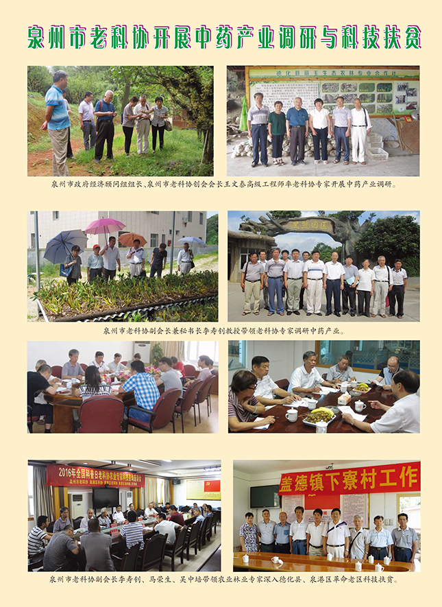 6月15~29日,泉州市政府经济顾问组组长、泉州市老科协创会会长王文泰高级工程师和副会长兼秘书长李寿钊教授带领林文銮教授、杨逢平高级农艺师、李朝灿研究员、卓开发高级工程师开展全市中药种养与加工专题调研。