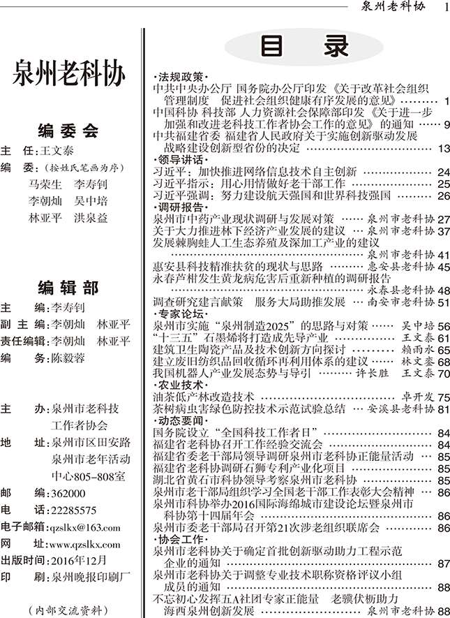 7月30日,《福建老科协》2016年第1期刊发《泉州市老科协:发挥五A社团专家正能量》。