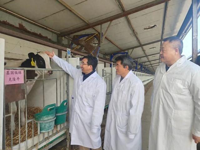 12月20日,在石家庄天泉良种奶牛有限公司奶牛场,项目团队成员正在观察克隆牛生长情况。从左到右依次为韩建永、刘红波、李树静。